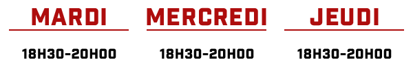 Nous vous proposons plusieurs cours mixtes pouvant accueillir jusqu’à 8 personnes et ouverts à tout niveau. Les horaires sont :