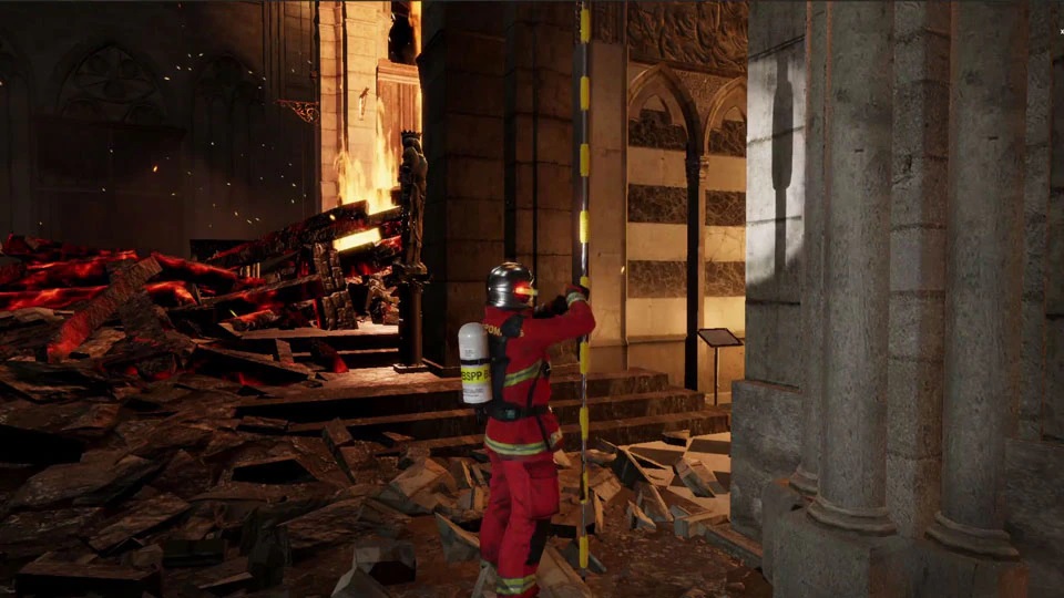 Sauvez Notre-Dame est un escape game en réalité virtuelle qui raconte le sauvetage historique de Notre-Dame de Paris lors de l’incendie qui a failli détruire la cathédrale le 15 avril 2019. Cet escape game est basé sur le film « Notre-Dame brûle » de Jean-Jacques Annaud et cherche à rendre encore plus hommage aux pompiers de Paris qui ont contribué à rendre le jeu immersif et authentique. Pendant 45 minutes, devenez un pompier qui sauve la cathédrale et son trésor le plus précieux : la couronne d’épines. Partez à la recherche du coffre de la relique sacrée, un secret bien gardé ; naviguez dans la nef en flammes après l’effondrement de la flèche ; puis montez dans la tour Nord qui surplombe Paris et revivez la mission de la dernière chance dans le beffroi.