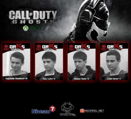 Quelques semaines après la sortie de Call Of Duty : Ghosts, les orKs officialisent enfin leur line-up decerto sur Xbox. Il s’agit du roster Azilium qui s’était fait remarquer sur Call Of Duty : Black Ops 2, lors de la LAN FCO#3.