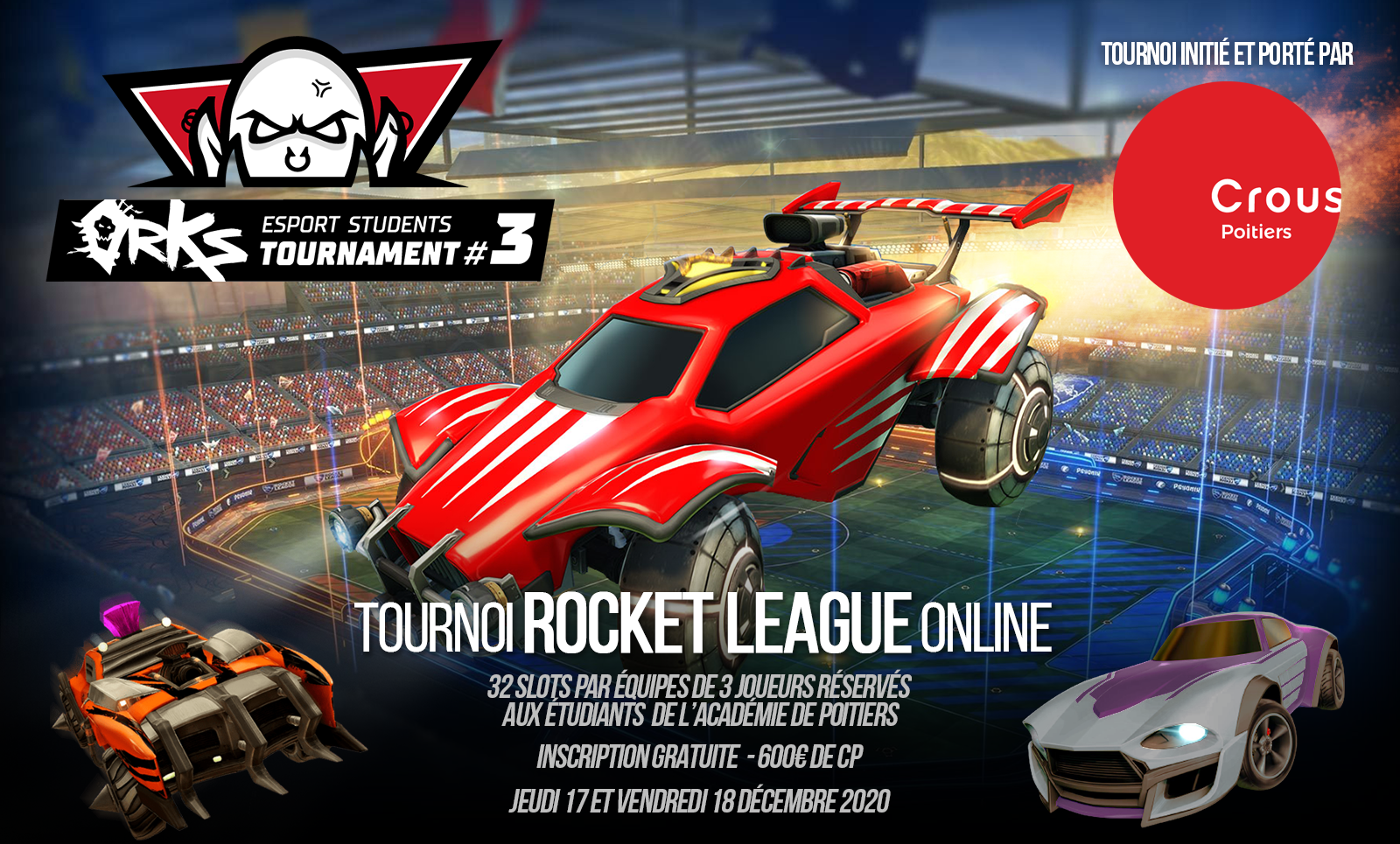 L’EST #3 est initiée et portée par le Crous de Poitiers et permettra à 96 étudiants par équipe de 3, soit 32 équipes, de s’affronter gratuitement sur Rocket League, ce mélange détonnant de football d’arcade et de chaos motorisé !