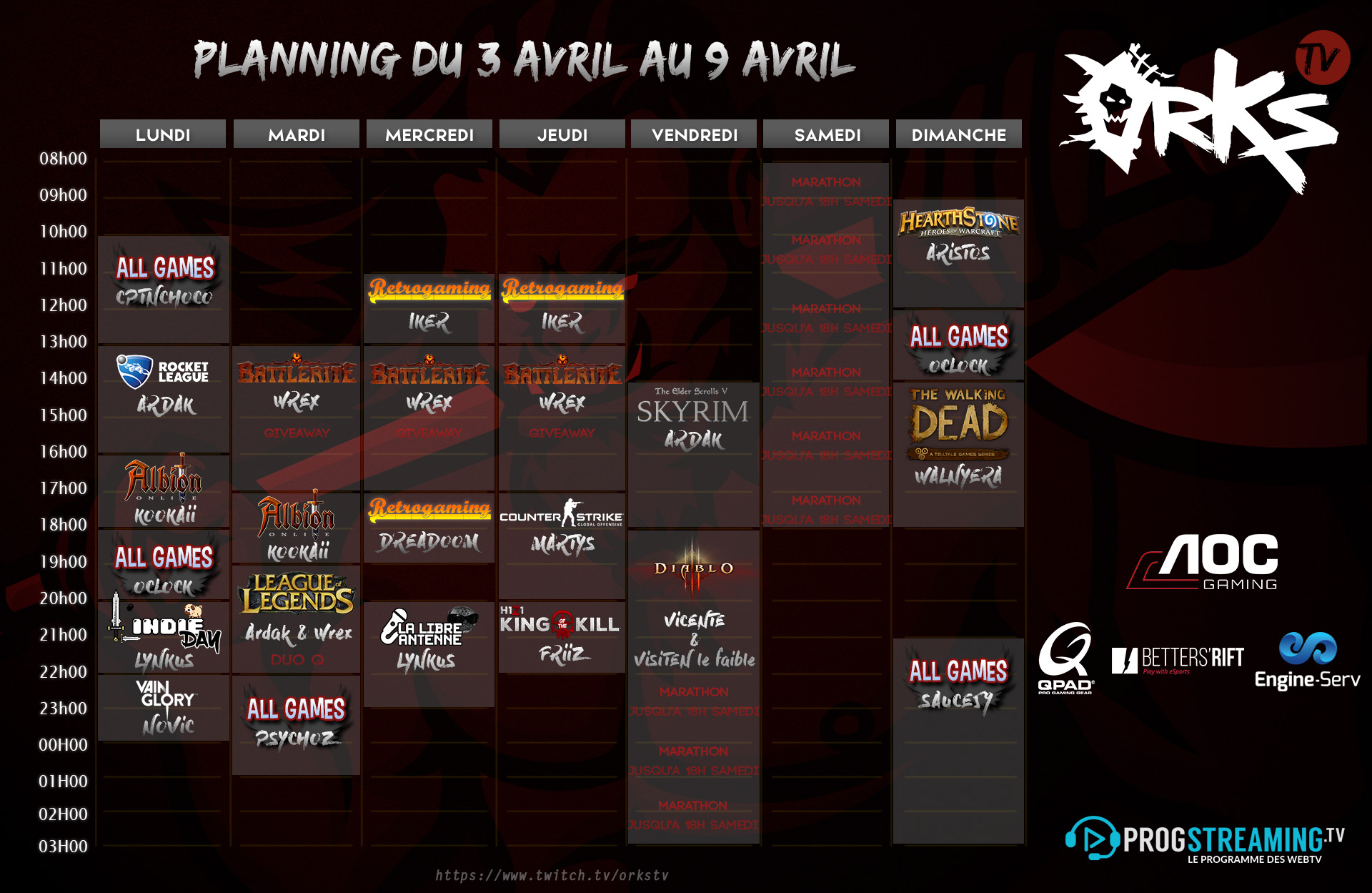 Il fait beau il fait chaud, mais on reste devant le PC ! Voici le programme de la orKs TV pour cette semaine ensoleillée :