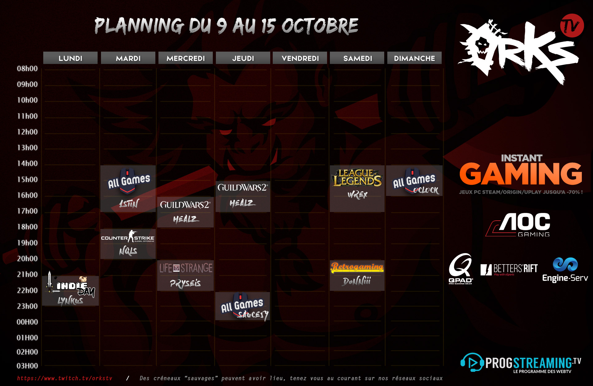 Découvrez ce que orKs TV vous réserve comme programme cette semaine :