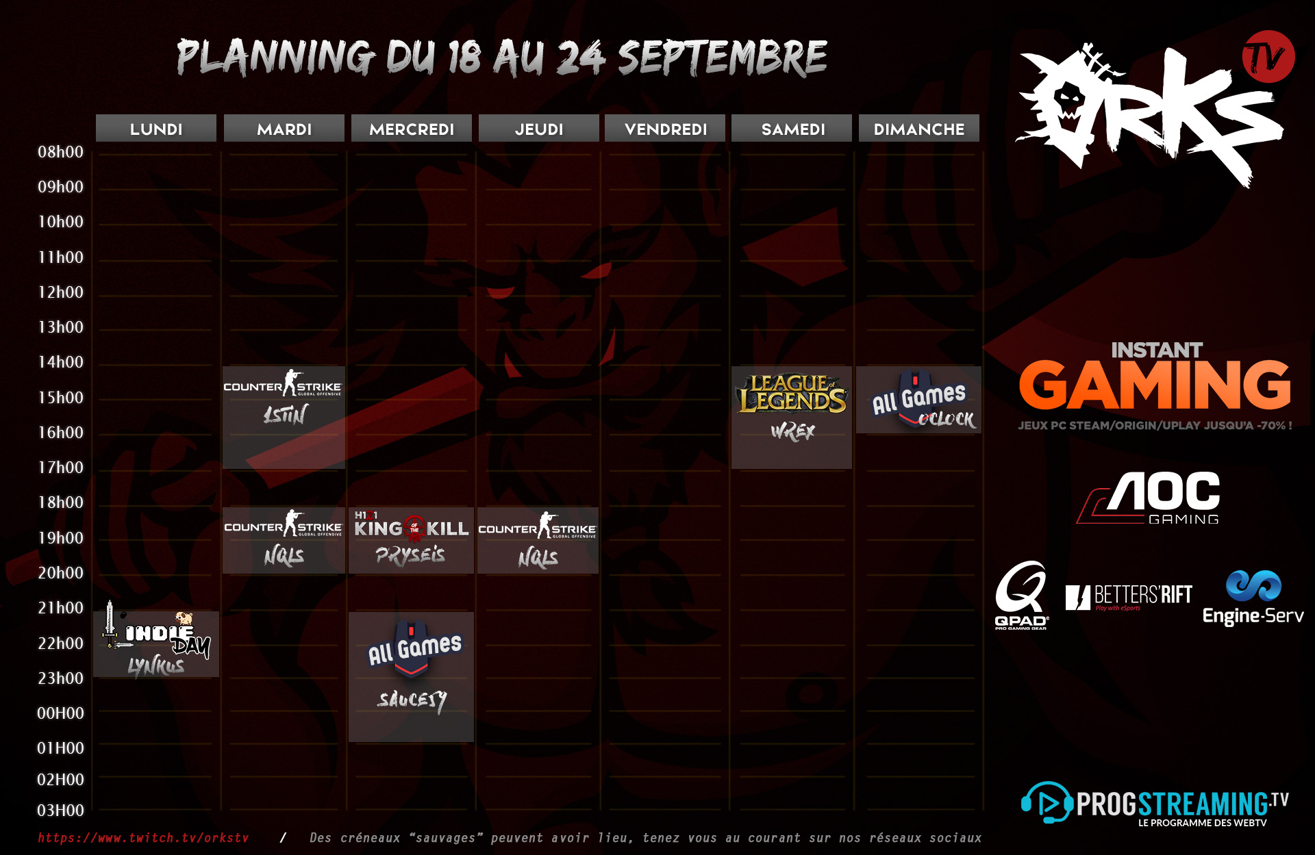 Voici ce qu’il vous attend sur la orKs TV pour cette nouvelle semaine :
